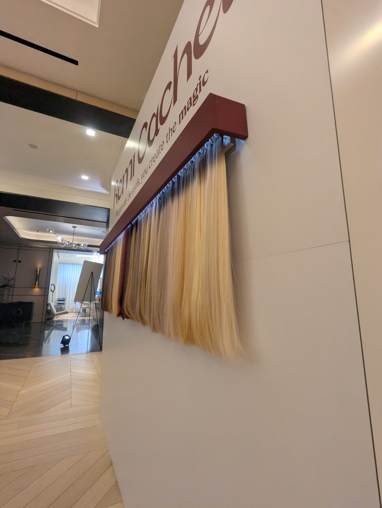- Hidden Mechanics: Behind the beautiful facade, we installed a hidden crossbar equipped with multiple eye hooks. This allowed the hair extensions to hang naturally and securely, making them easy for the stylists to grab during demonstrations.