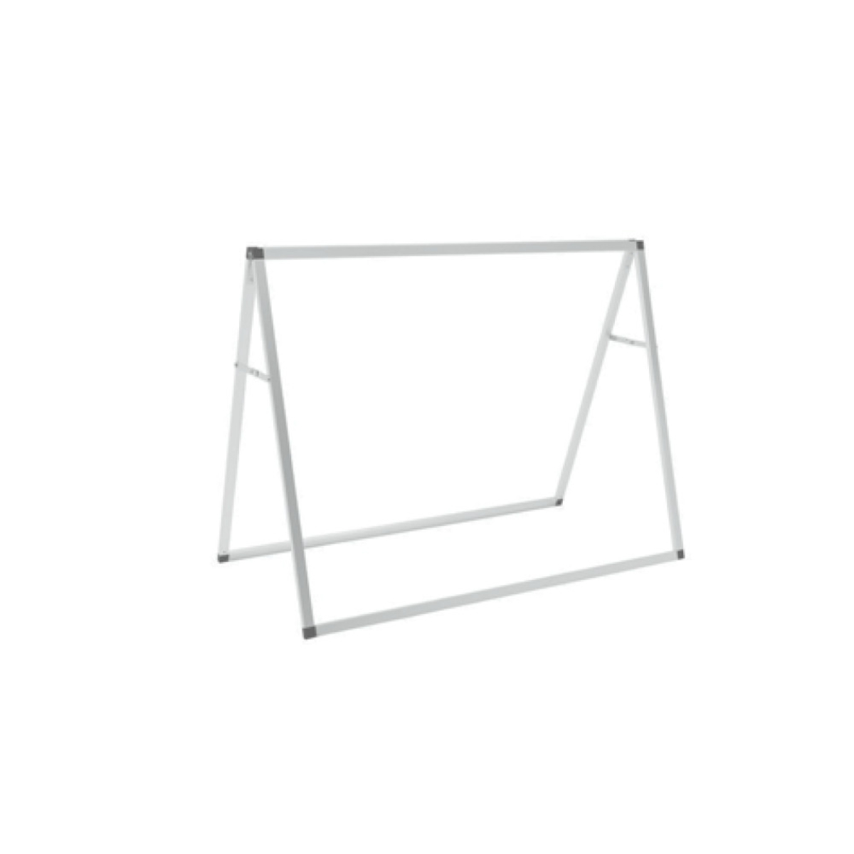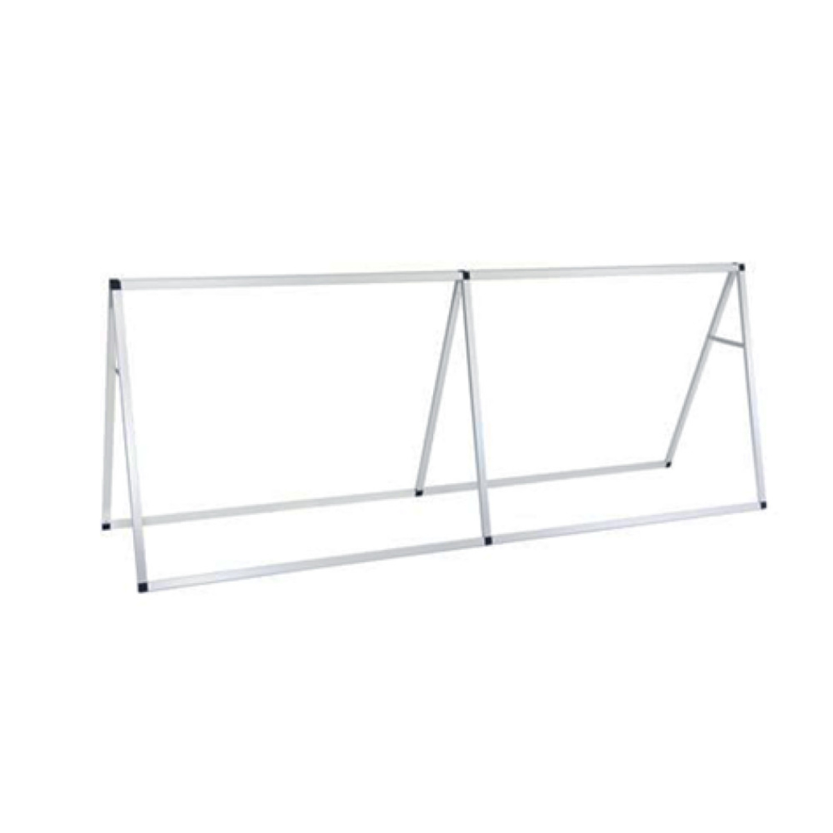 Ideal for outdoor events, the A-Frame Banner Display is a durable and effective advertising tool. Can be displayed with a single front graphic or graphics front and back for double the impact. The sturdy aluminum bars easily connect for quick assembly and the grommeted banners are attached via hooked bungee cords.
