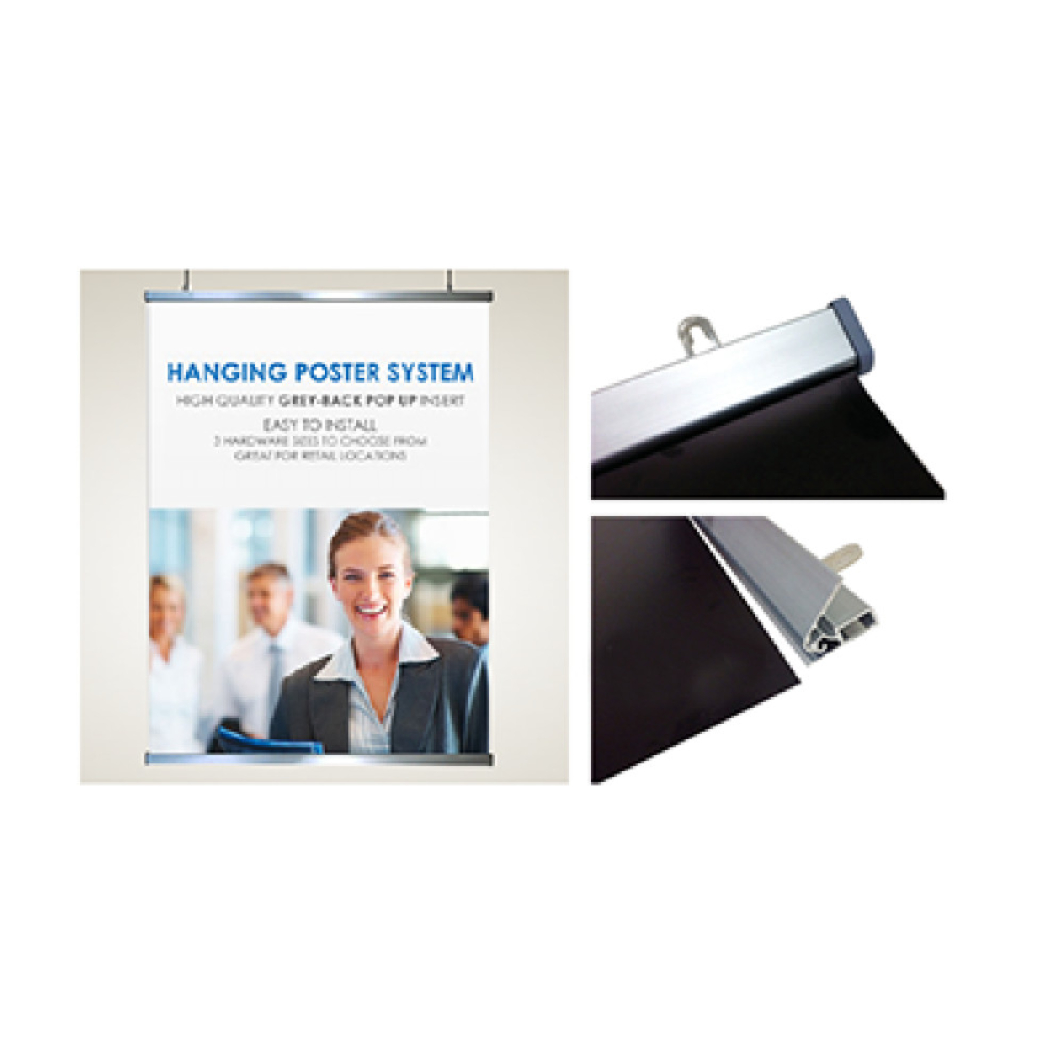 Our Snap Poster Hanger System is made of the finest aluminum. With our 3 step easy install, you can install or change graphics within seconds. Simply open, insert, and snap close. Thanks to this unique design, our Snap Poster Hanger will hold your graphic with amazing strength with no scoring, pockets, or any special graphic treatment. This easy-to-use hardware system comes with 4 ready to hang hooks and can be used in any indoor location.
