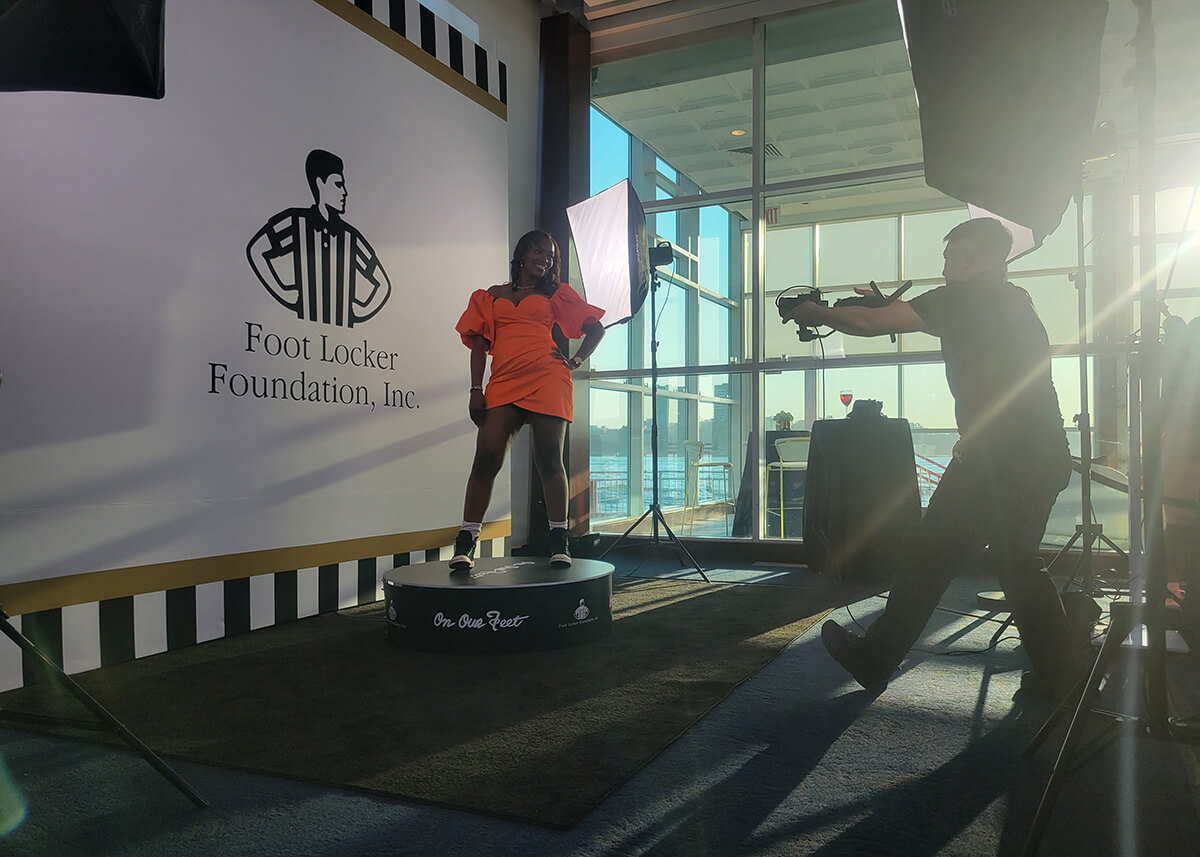 choose from: Graphic Backdrop / Green Screen / on-location background